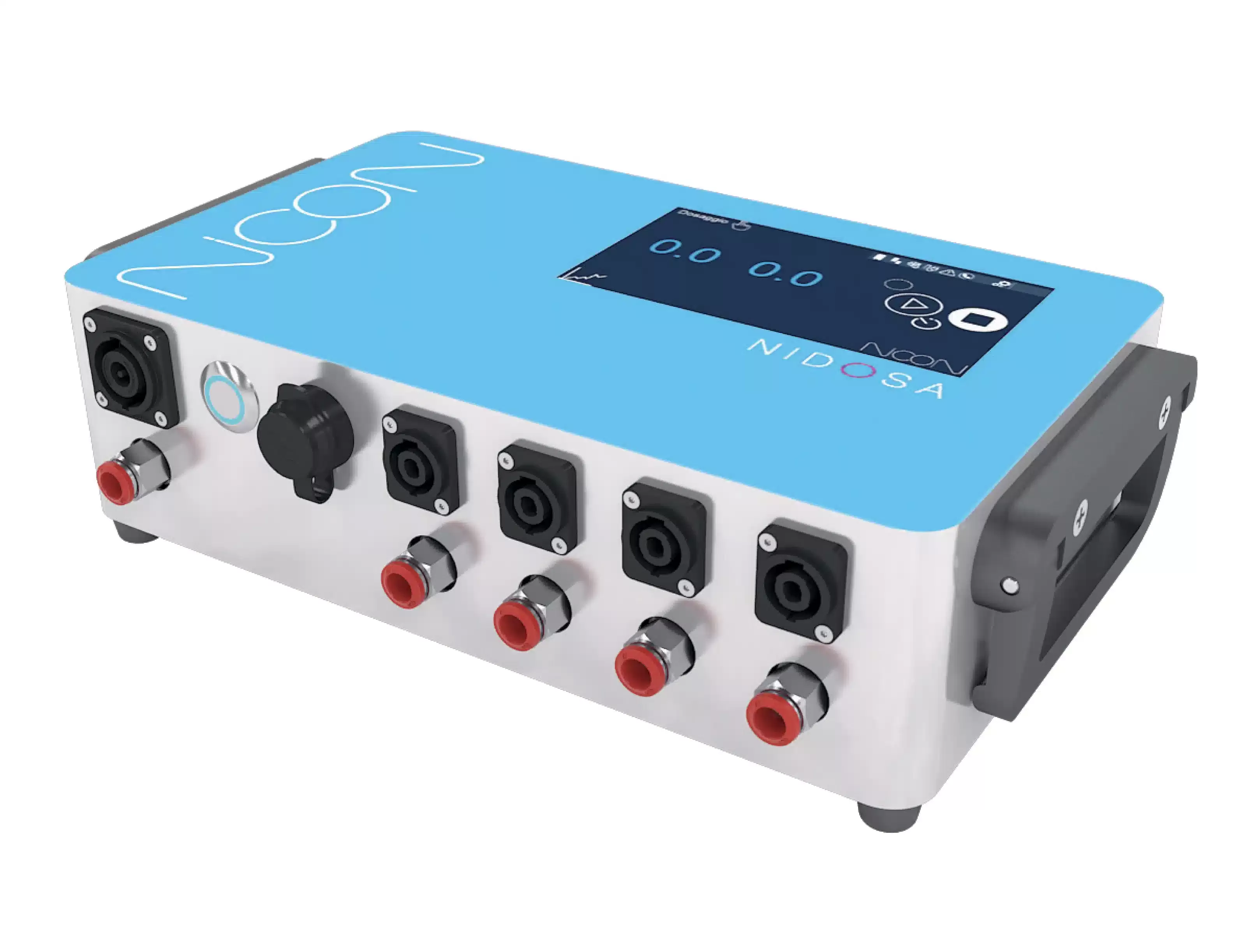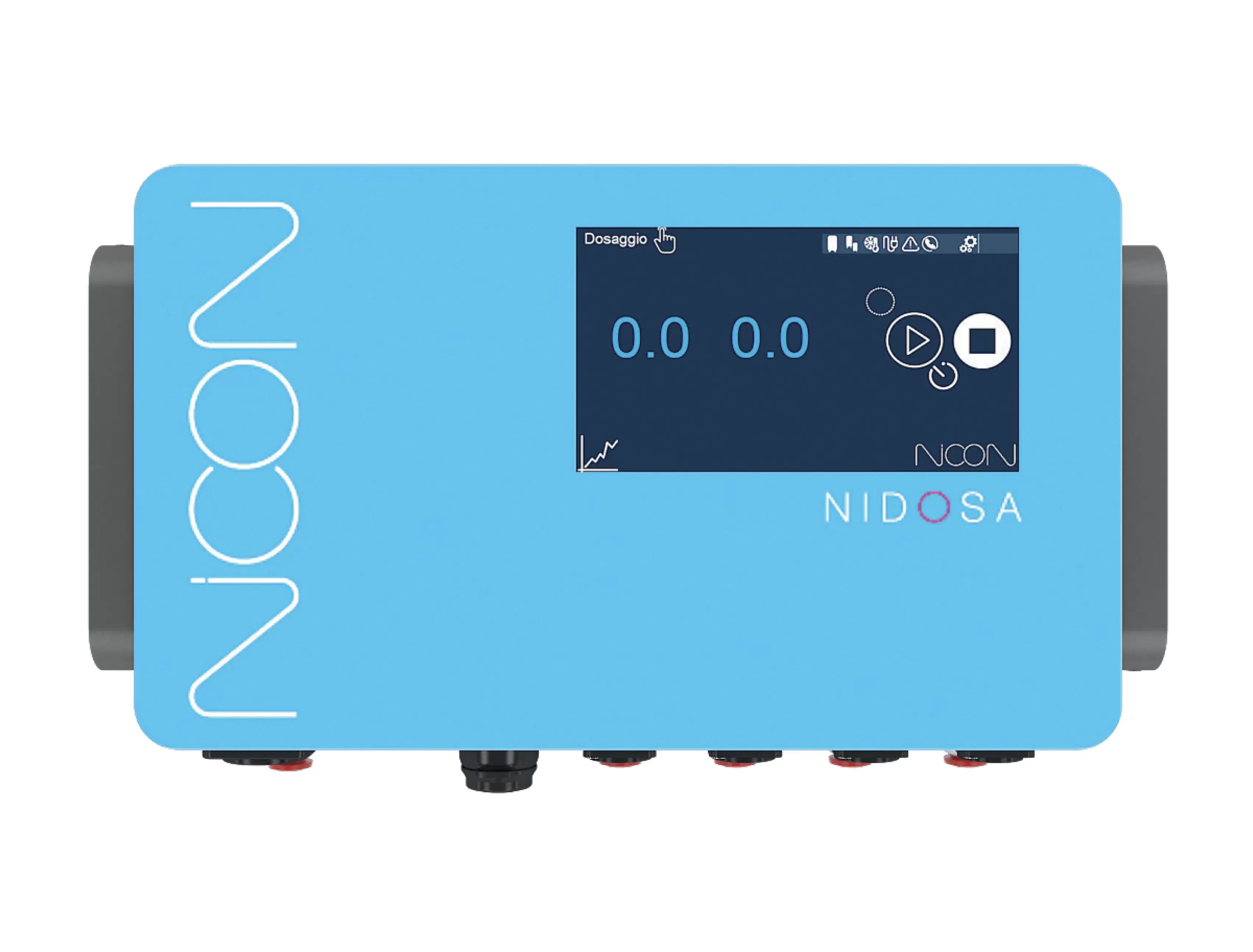 L'interfaccia touch semplifica la navigazione attraverso le impostazioni e le opzioni del sistema, fornendo un controllo accurato e immediato delle operazioni. Le pompe di dosaggio utilizzate nel Nidosa sono progettate per garantire un'alta resistenza chimica. Ciò significa che sono in grado di gestire in modo sicuro e affidabile una vasta gamma di prodotti chimici, senza subire danni o compro- mettere la qualità del dosaggio.